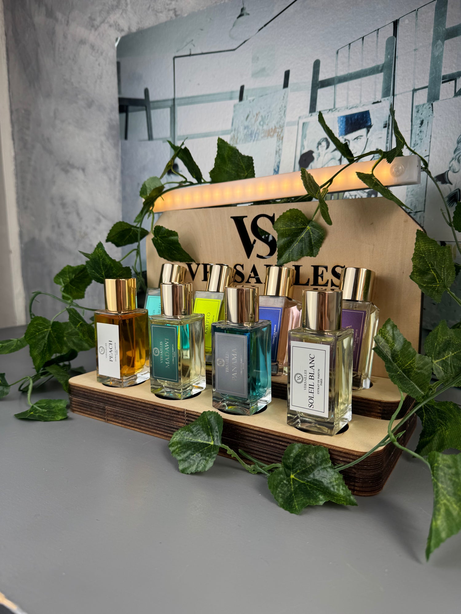 Fondée en 2019, la Maison de Parfumerie Versailles est née d'une passion commune pour l'art et l'élégance, inspirée par l'histoire et le raffinement du Château de Versailles. Cette maison de parfumerie est le fruit de la collaboration entre des spécialistes, tous animés par le désir de rendre accessible l’art de la parfumerie de luxe.